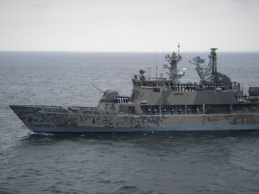 Entering Finnish territorial waters at 20.00 PM, "Esbern Snare" is met by the Finnish Minesweeper "Pohjanmaas" which renders salute.